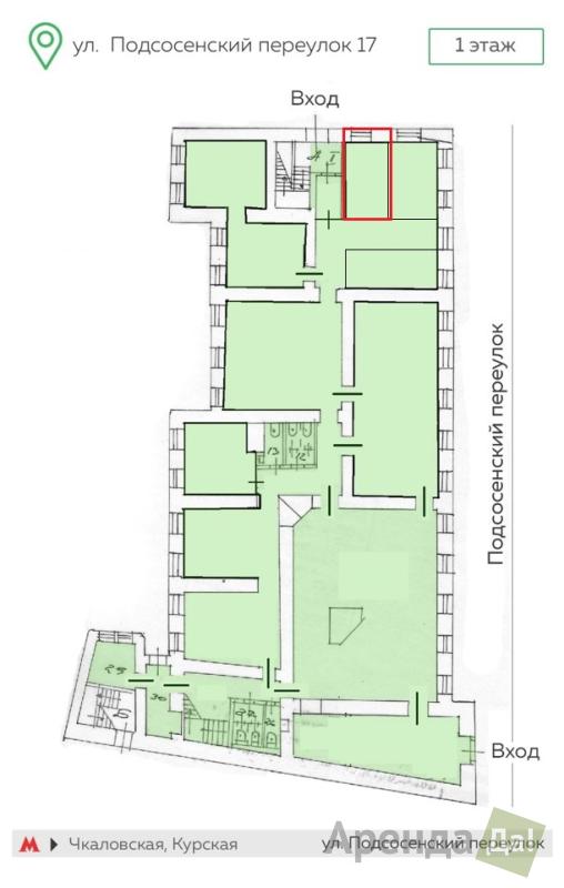 Офис 12,72 кв. м. на Подсосенском переулке