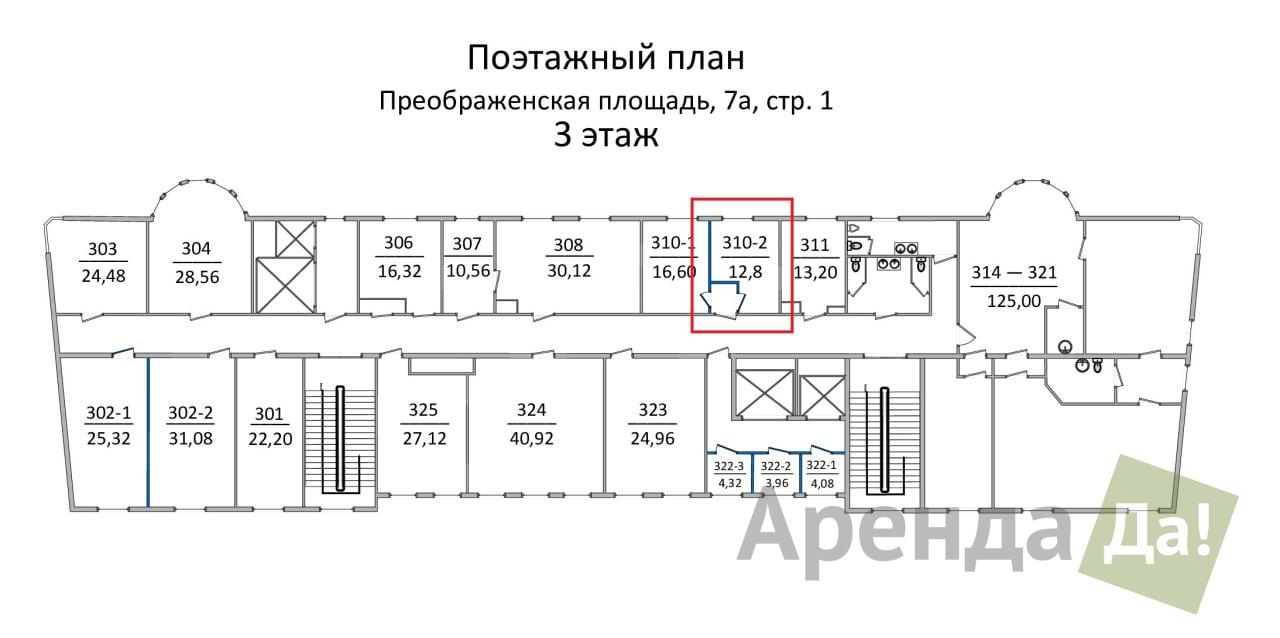 Помещение 12,8 м2. в БЦ Преображенский 7.