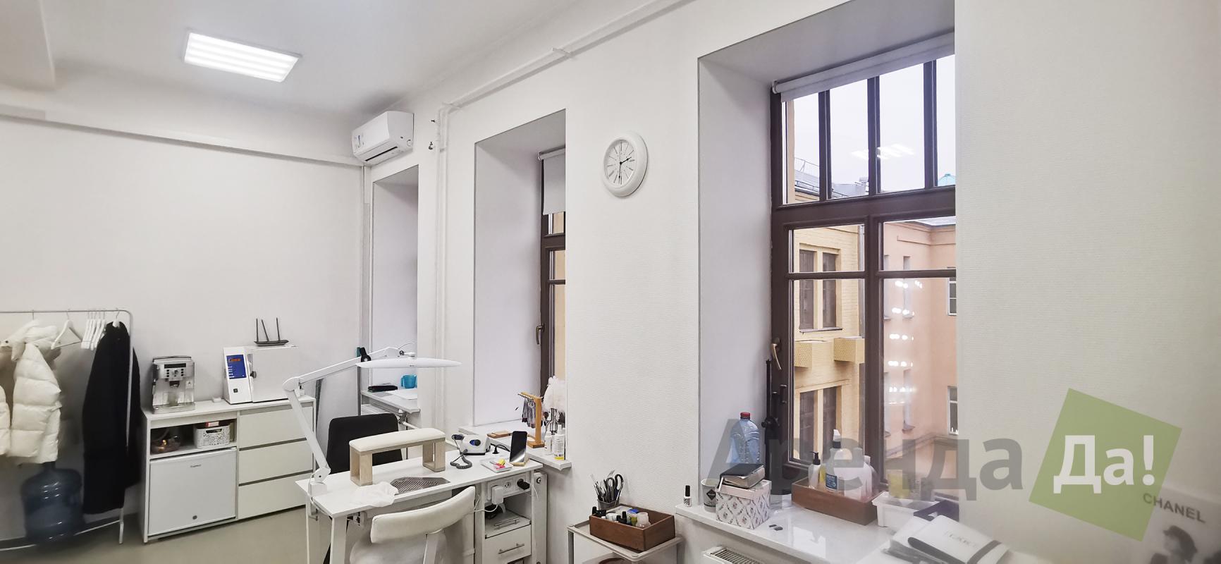 Помещение с «мокрой точкой» состоит из 2-х комнат: одна проходная, одна изолированная. Обе комнаты оборудованы кондиционерами, очень светлые, с красивыми видами из окна. Идеально подходит для оказания услуг сферы красоты, шоурума или офиса компании.