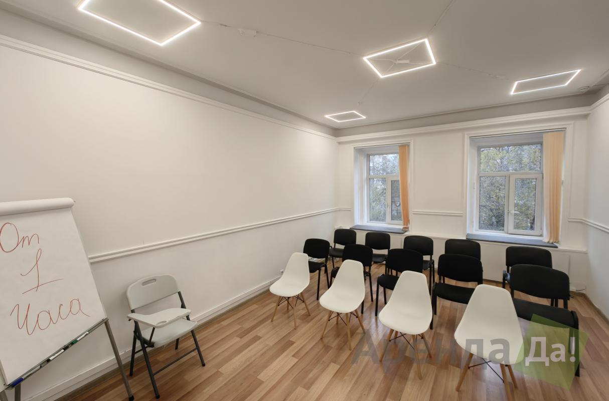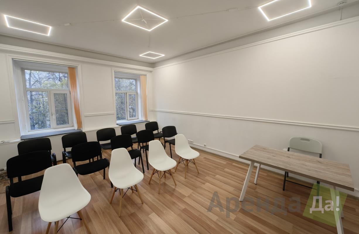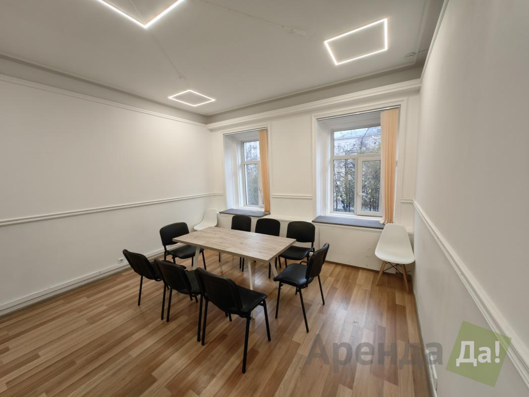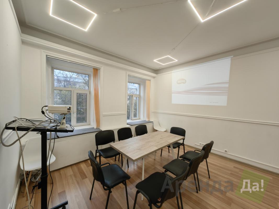 Просторное помещение правильной прямоугольной формы с двумя окнами, которые выходят на Покровский бульвар. Презентабельная входная группа.