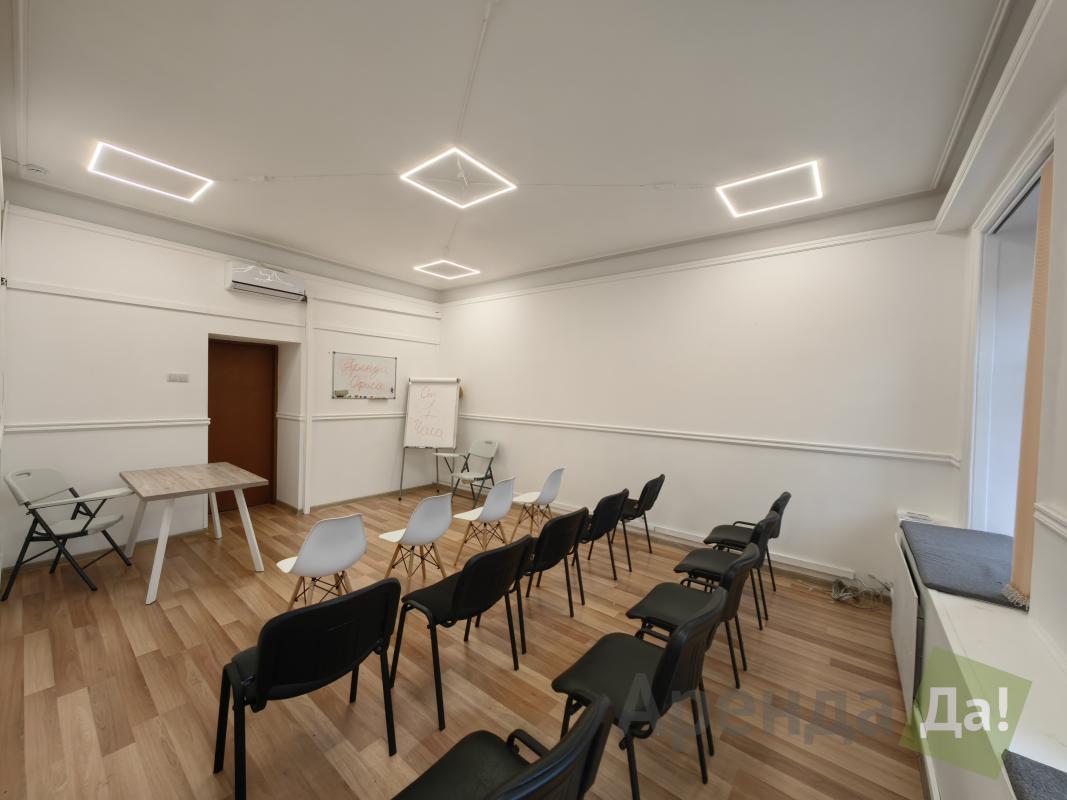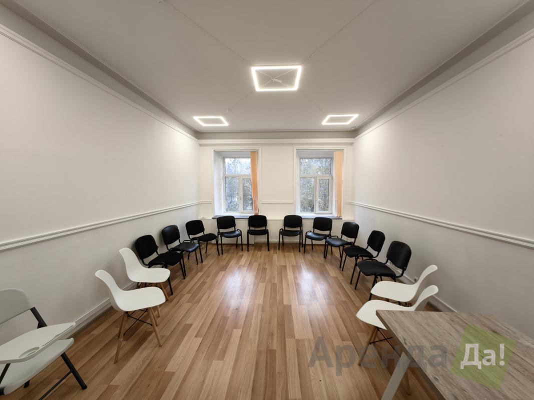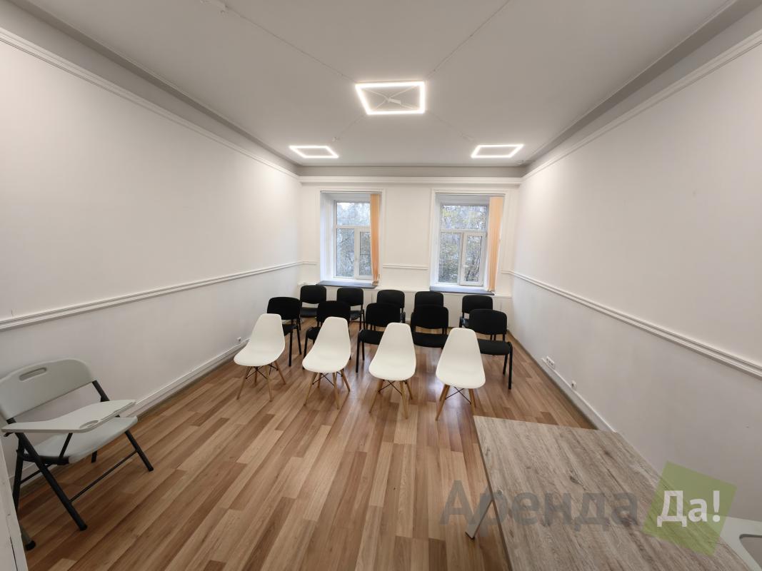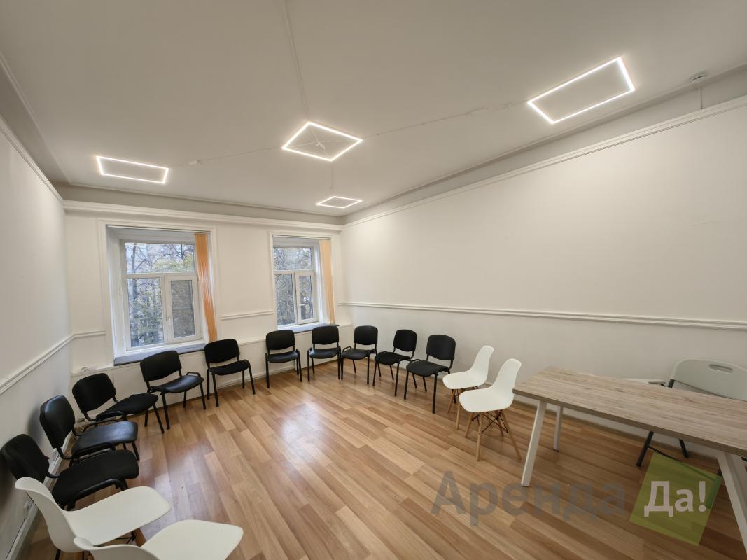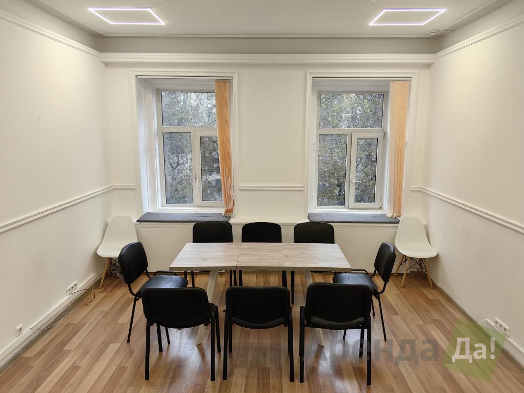 Просторное помещение правильной прямоугольной формы с двумя окнами, которые выходят на Покровский бульвар. Презентабельная входная группа.