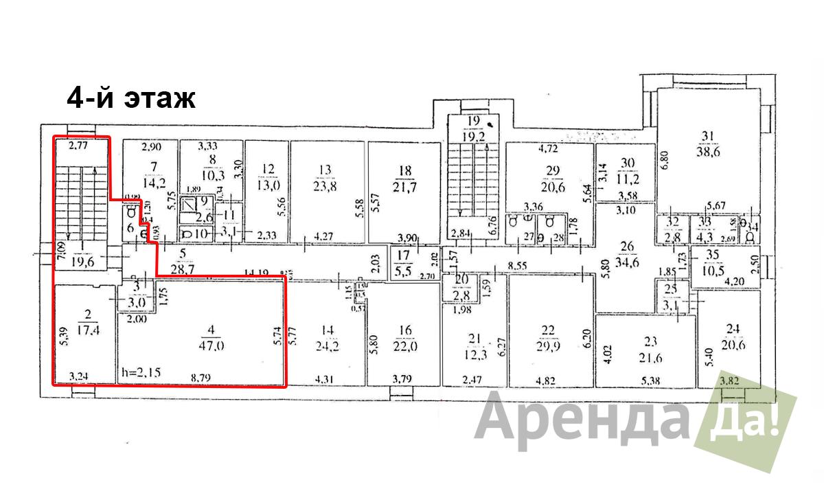 Общая площадь: 628,8 кв.м. В блоке: 2-й этаж – 267 кв.м, 3-й этаж – 262 кв.м., 4-й этаж – 99,8 кв.м. Отдельная лестница между этажами для арендатора.