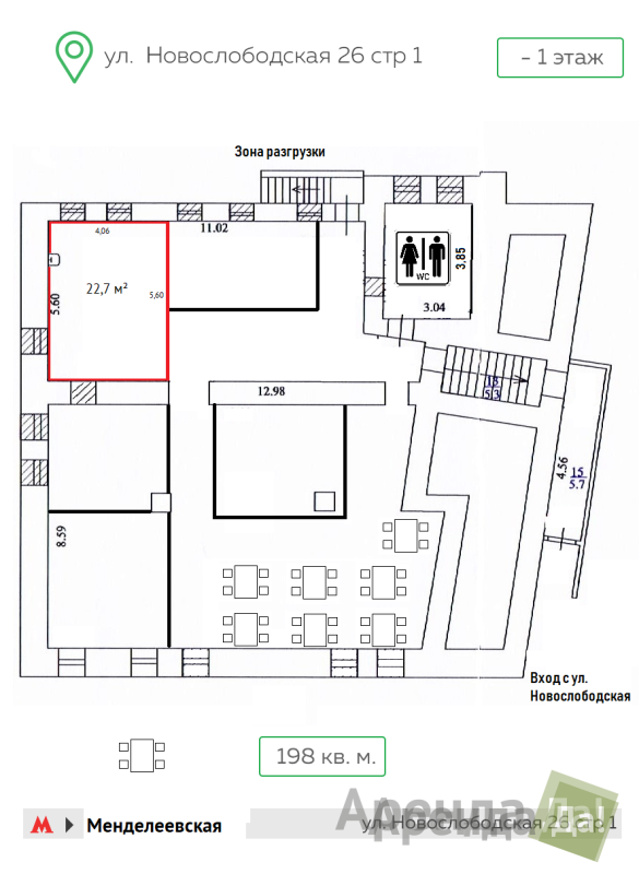 - Аренда 22 кв. м. на фудкорте Новослободский