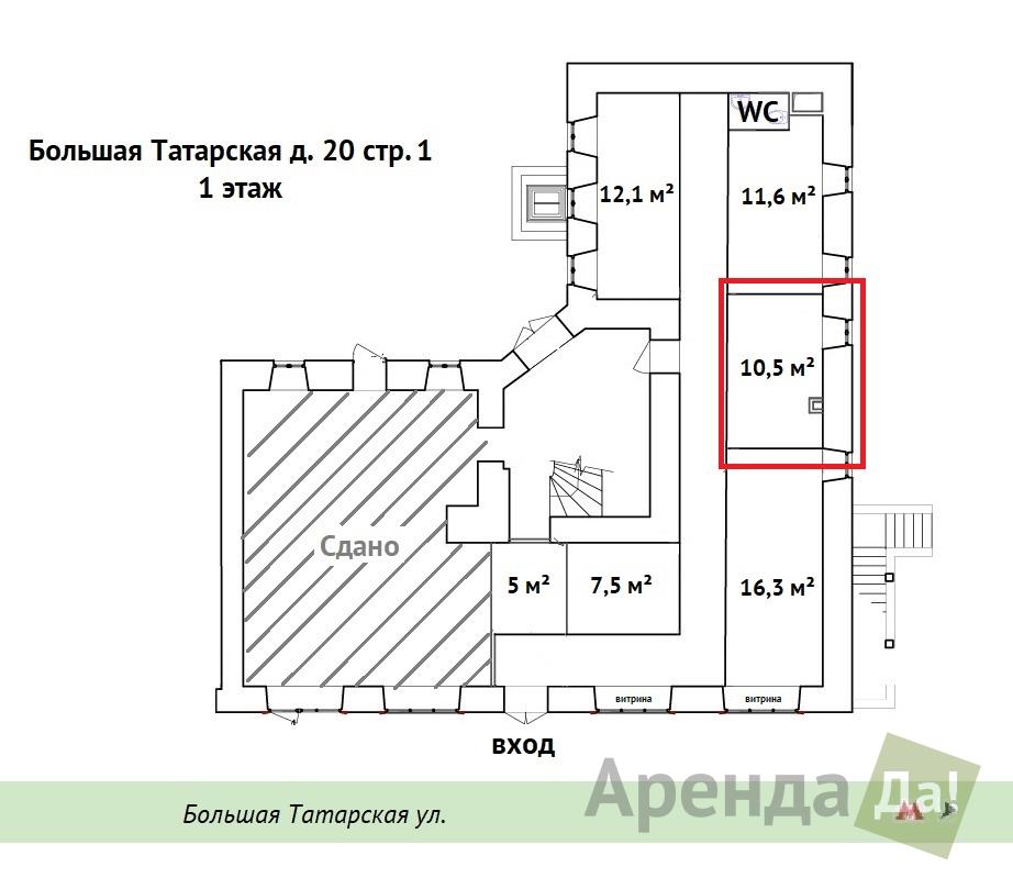 Отдельный вход с ул. Б. Татарская и зоной погрузки во дворе.