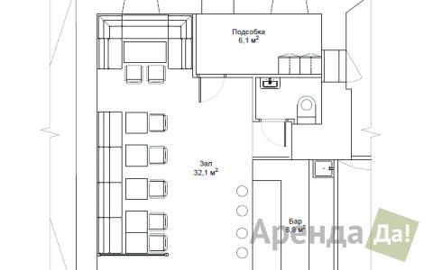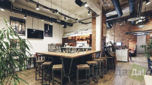 Высокие потолки, большие витринные окна, возможно размещение летней веранды, есть место для размещения наружной рекламы.