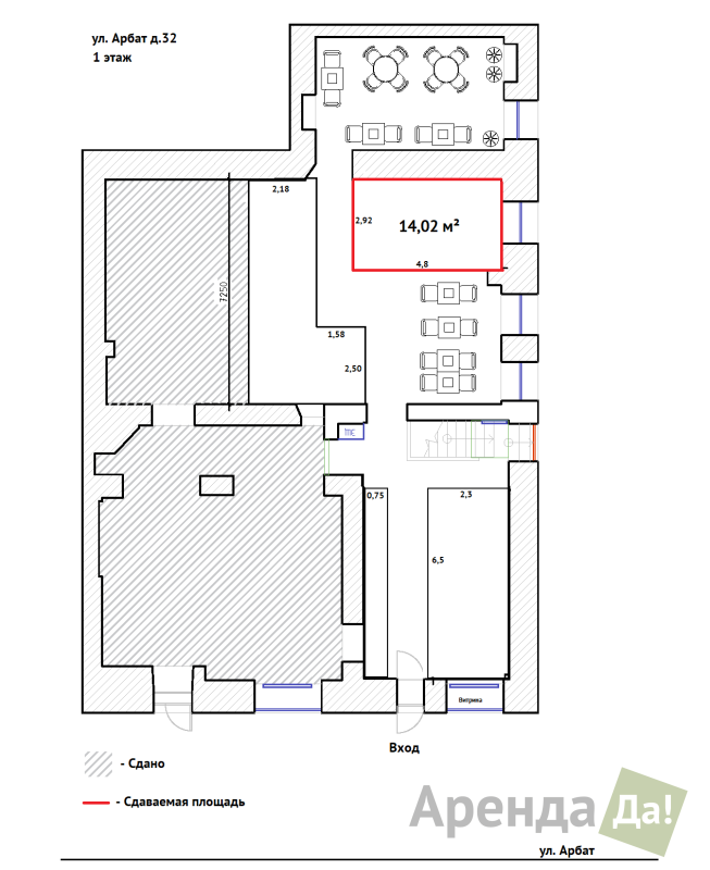 Аренда торгового помещения на Старом Арбате будет выгодна для всех видов клиентского бизнеса, особенно для общепита. Здесь в любое время года и в любую погоду бесконечный поток клиентов. При этом у предлагаемого помещения есть ряд уникальных преимуществ: