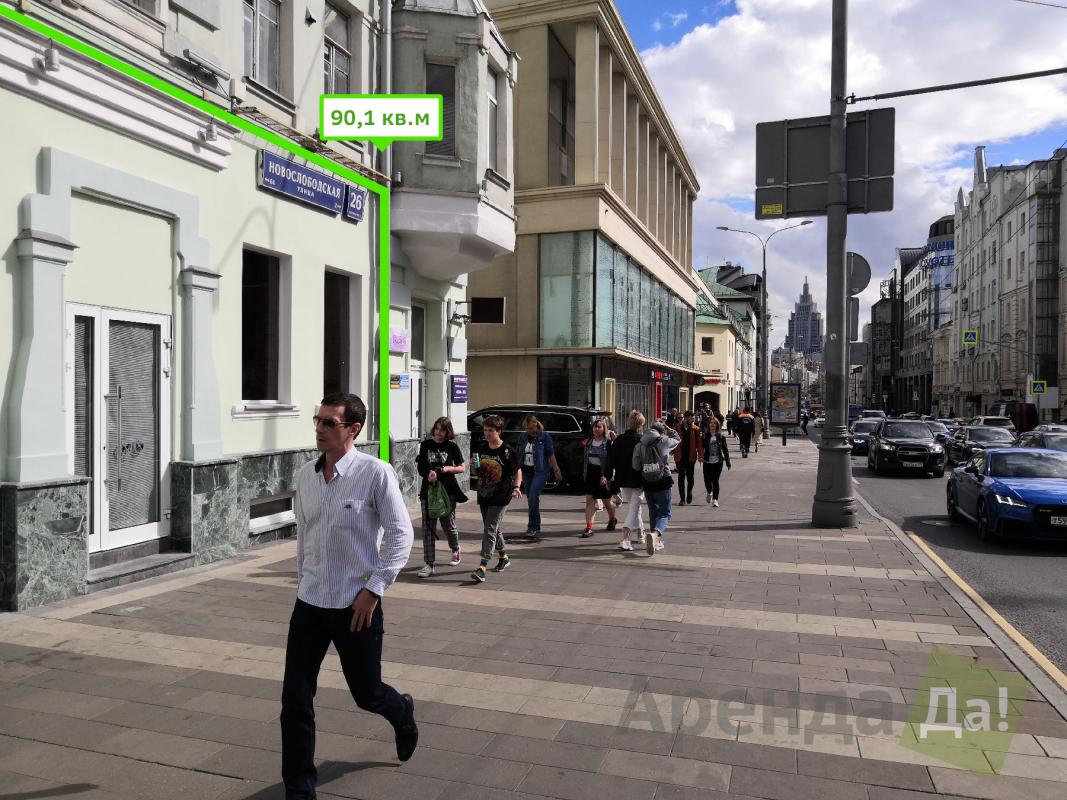 Собственник сдает в аренду торговое помещение на Новослободской, одной из самых проходных деловых улиц Москвы.