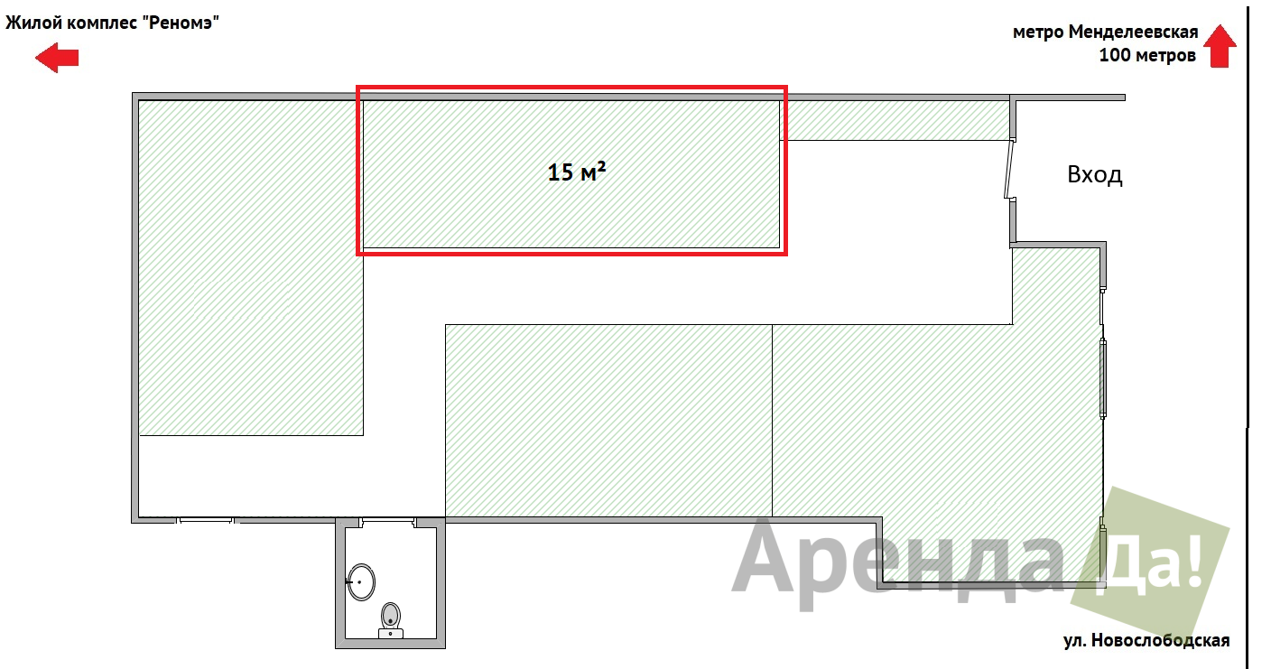 Насыщенный пешеходный трафик, связанный с близким входом в метро Менделеевская, обеспечивает торговые предприятия постоянным притоком посетителей.