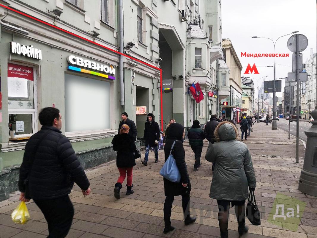 Насыщенный пешеходный трафик, связанный с близким входом в метро Менделеевская, обеспечивает торговые предприятия постоянным притоком посетителей.