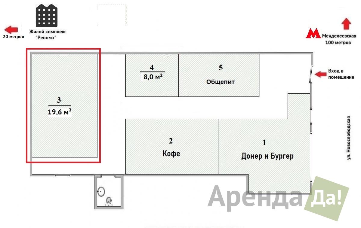 Насыщенный пешеходный трафик, связанный с близким входом в метро Менделеевская, обеспечивает торговые предприятия постоянным притоком посетителей.