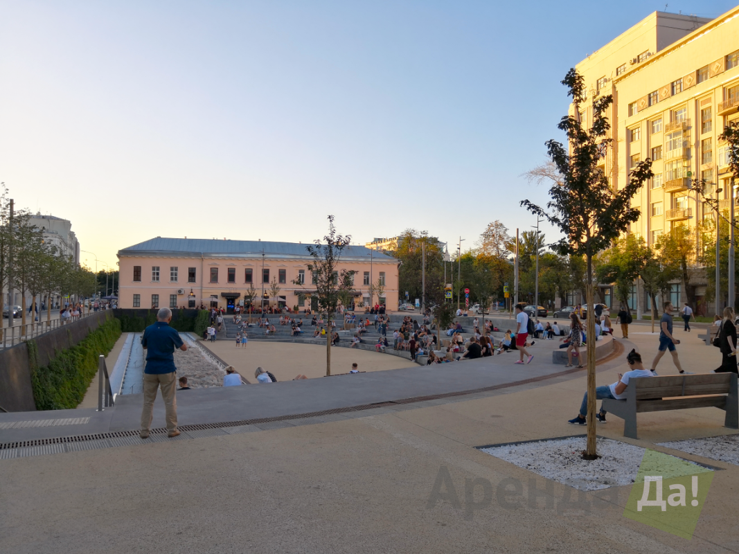 Перед фасадом здания широкая пешеходная зона и Хохловская площадь на которой расположено углубленное общественное пространство с амфитеатром, как в музее под открытым небом. Данный объект признан лучшим проектом городского дизайна в Москве.