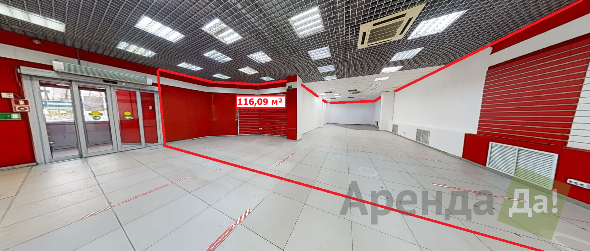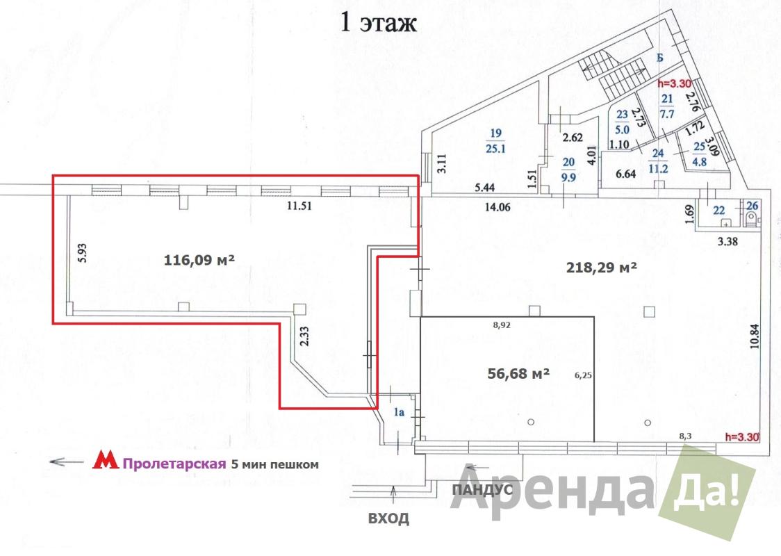 Компания "АрендаДа!" предлагает в аренду торговую площадь 116,09 кв.м на 1-й линии домов Волгоградского проспекта.