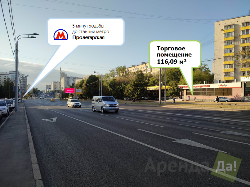 - Окружение – густонаселенный жилой массив с населением свыше 150 000 человек. На помещение направлен пассажиропоток из выхода станции метро «Пролетарская».